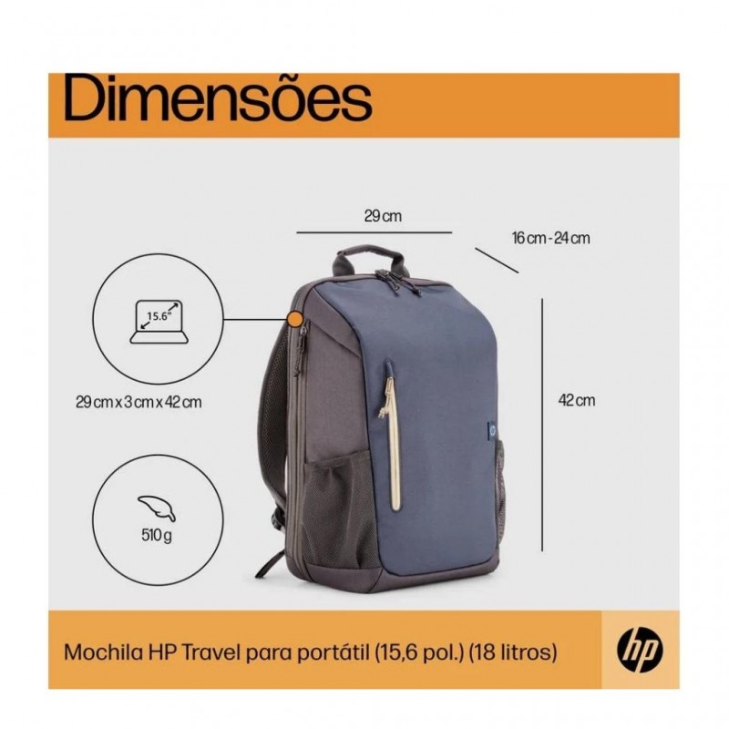 HP Mochila Travel 18L cinza para Portátil 15.6"